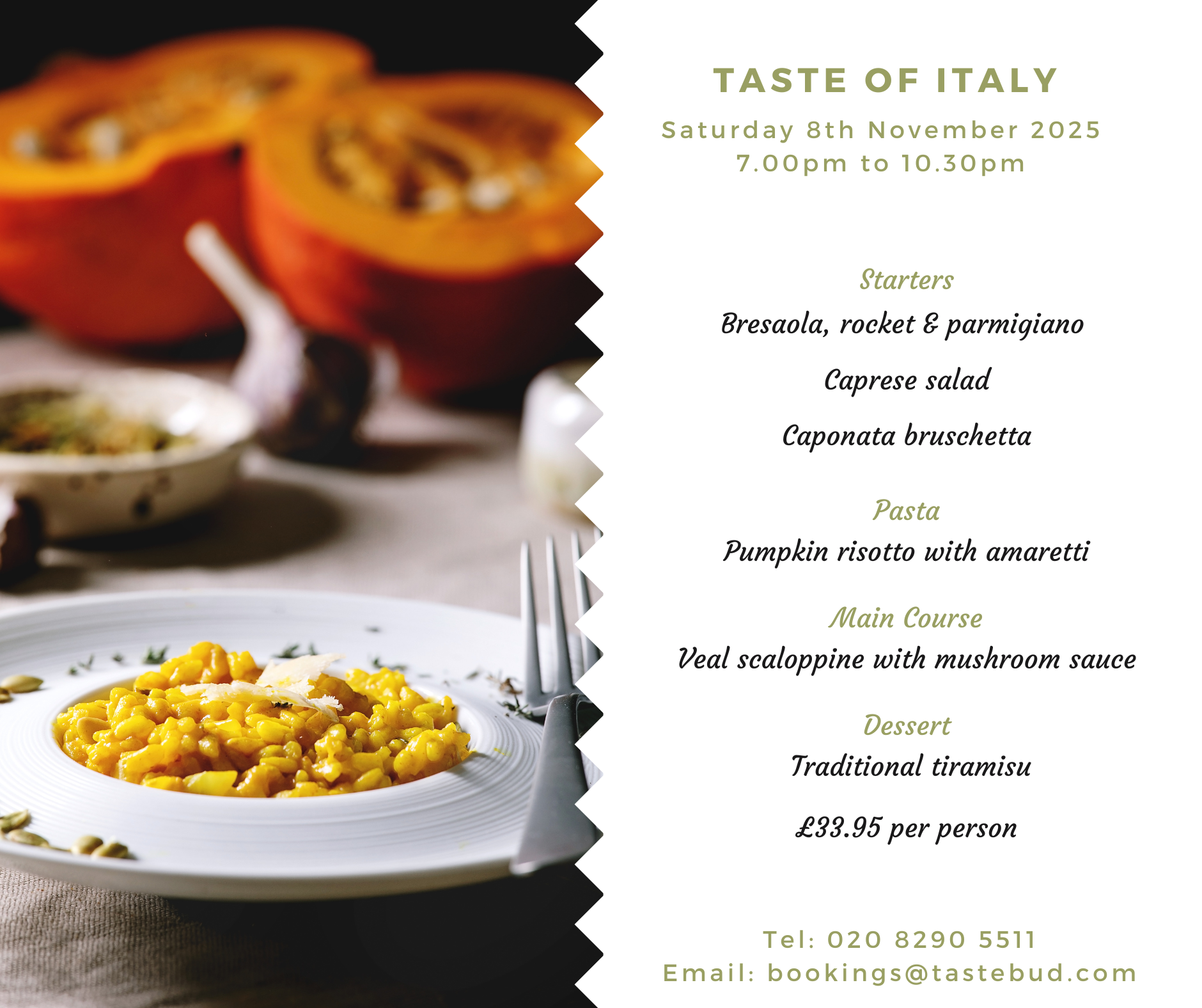 At Taste Bud, we host monthly Taste of Italy evenings, usually on the last weekend of the month, from 7pm to 10.30pm.
